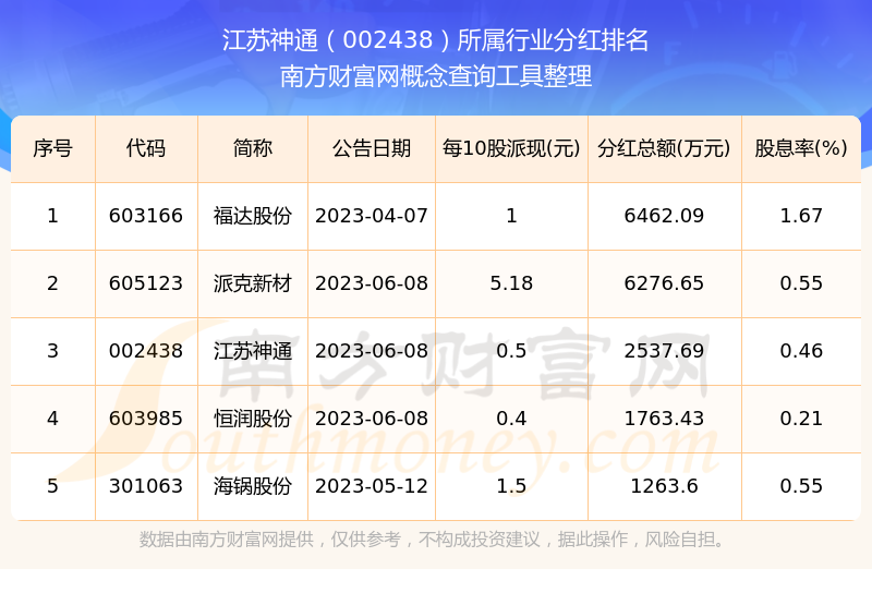 按照南方财富网趋势选股系统统计,江苏神通所属行业为法兰行业,法兰行业分红排名情况如下表: