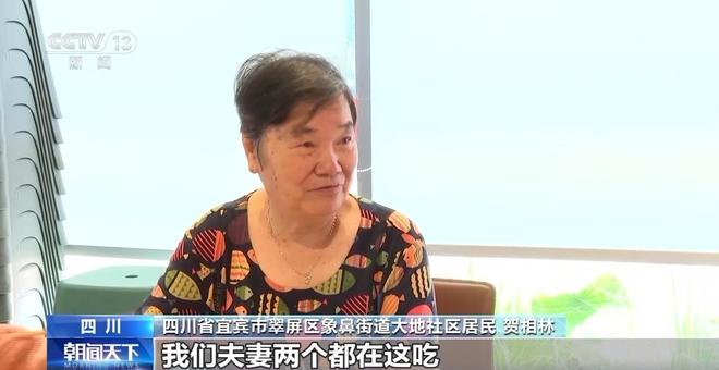 四川宜宾翠屏区象鼻街道大地社区居民 贺相林:有了(社区)食堂,我们夫妻两个都在这吃,方便又卫生,想吃啥就舀啥,挺好的。