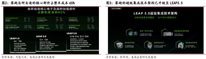 零跑汽车自 2015 年创立以来,始终坚守全域自研的发展战略,在电子电气架构、智能座舱、智能驾驶、智能电池、智能电驱及整车架构这六大关键技术领域深耕细作,逐步构建起极具竞争力的超级集成技术架构体系。截至 2025 年,该架构已成功迭代至 LEAP3.5 版本,凭借更高集成度的中央集成控制器、超级集成电驱系统,以及新一代 27 合 1 超级集成热管理系统等前沿技术,搭配高通 8295 与 8560 芯片方案,不仅实现了端到端高阶智驾功能,更将整车线 米,全方位彰显了零跑汽车强大的自研实力与技术创新能力。