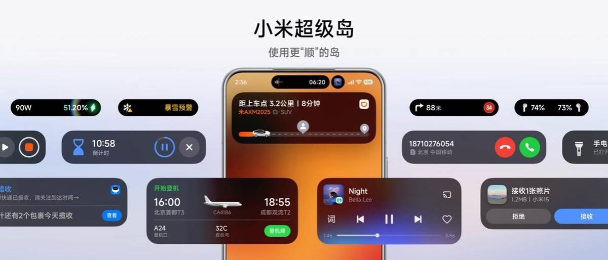 小米澎湃OS 3将焦点通知与设备通知进行融合,推出「小米超级岛」,方便用户一目了然得看到正在发生的重要信息。同时小米超级岛行业首创推出下拉小窗及拖拽分享功能,可将滴滴行程信息及时分享微信好友,实现即用即走、顺滑自然的使用体验,为通知信息提供了创新性的解决方案。