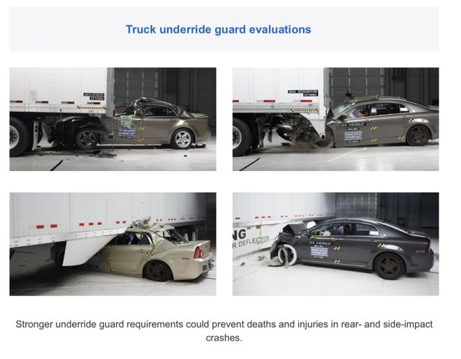 比如IIHS最出名的“卡车钻撞测试”,但它的测试对象并非后方乘用车,而是对前方卡车下护板结构安全性的测试,变量是前方被撞击的卡车。