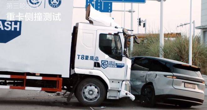 理想i8是以60km/h的速度与40km/h的重卡完成正面碰撞,两车是相对速度能达到100km/h。