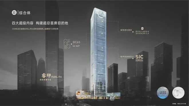 当代地标不止比高度,更是场景体验的迭代竞赛。SIC面向未来精英,打造总部办公、商业、酒店和私域一体化平台。60万方体量涵盖LEED金级与WELL双认证超甲商务旗舰写字楼、COMORROW超深活中心社交场、深圳香格里拉云端酒店及SIC65私域商务公馆。